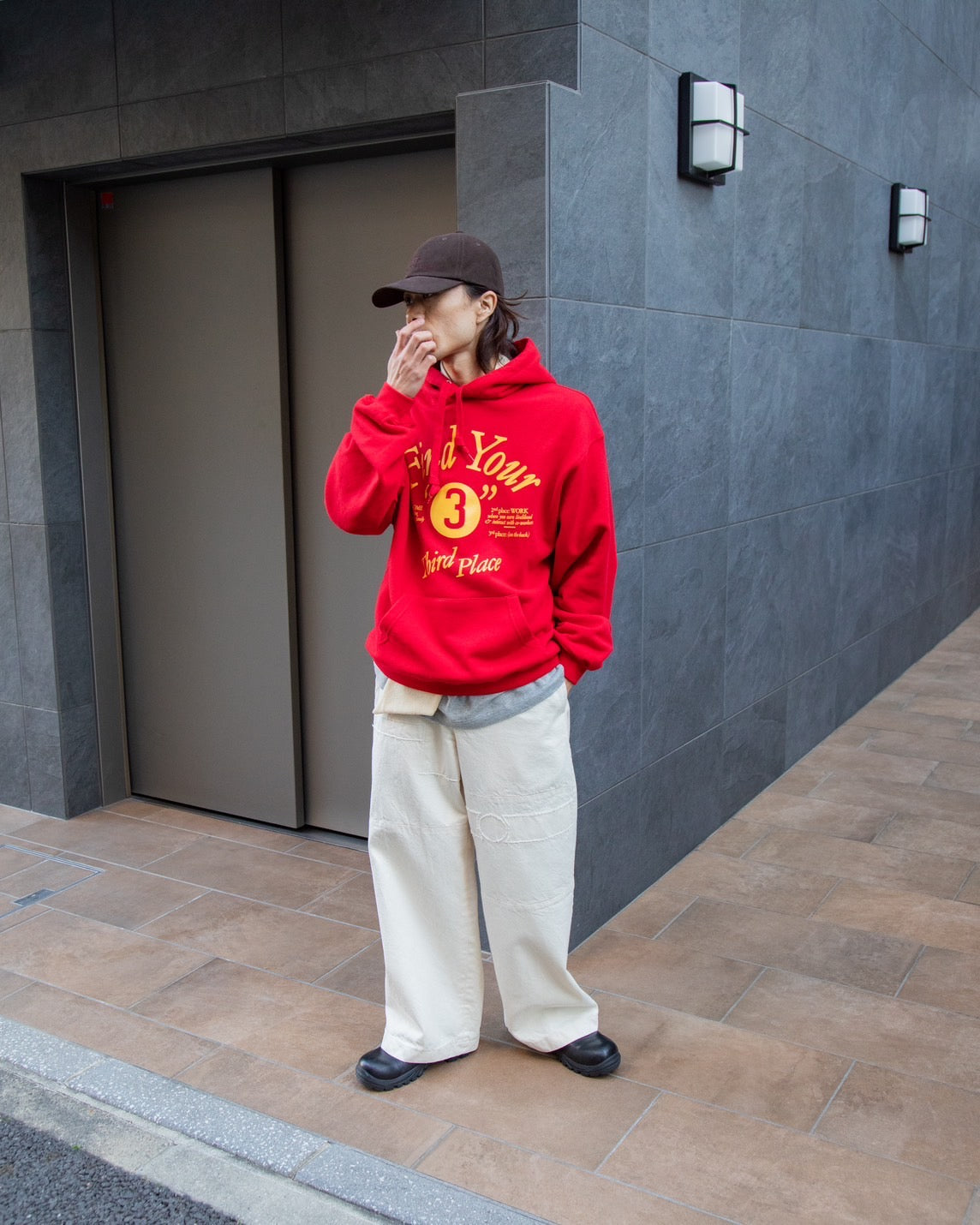 THIRD PLACEオリジナルスウェットをKOTONAさんも愛用していただいていて、スウェットスタイルに合わせたいパンツをSpomenikとして解釈し提案していただきました。